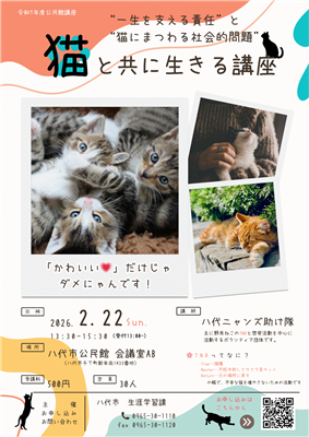 この講座を通じて、猫にまつわる様々な活動や社会問題を知り、猫と人の双方にとって幸せな生き方について考えましょう。